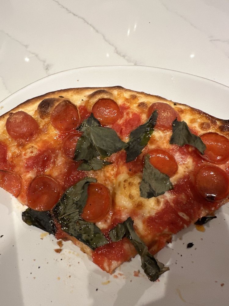 Mozzarella, tomato sauce, fresh basil, pepperoni and hot honey.